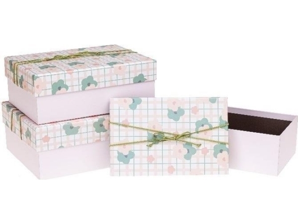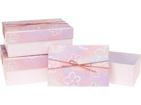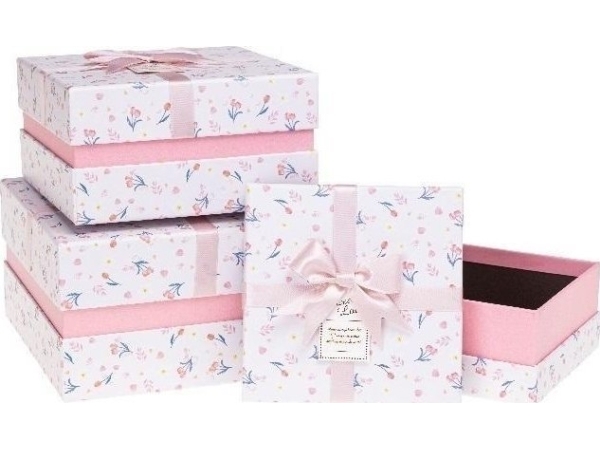 Flower Box With Bow 3Pcs C.Pink Rozette