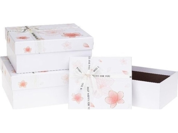 Flower Box With Bow 3Pcs White Rozette