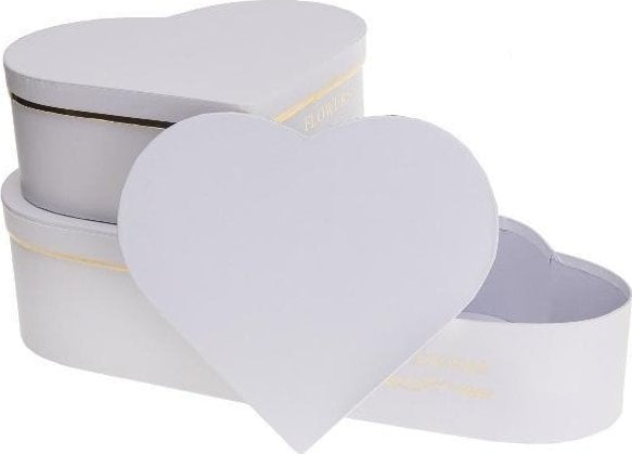 Flower Box 3Pc White Heart Rozette