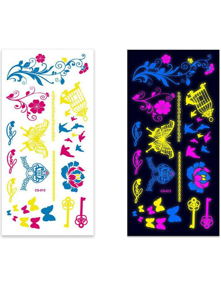 Ark med Fluorescerande Blommor, Fjärilar och Andra Tatueringar (UV-fejktatuering)