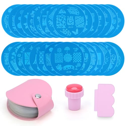 Kurtzy Nagelstämpel Konstuppsättning med 30 Stämpelformer – Manikyr Verktyg med Stämplare & Skrapare – Blandade Former – Blommor, Mönster, Fjärilar, Sjöjungfru, Djur, Semester & Geometrisk