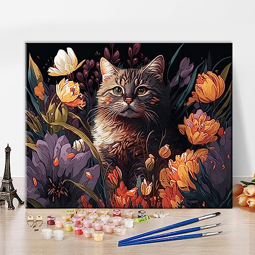 Måla efter nummer-kit för vuxna djur katt och blommor, gör-det-själv-oljemålning för vuxna, abstrakt målning efter nummer-set, konstduk, konstset med penslar, hantverk