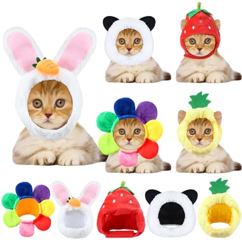 5 st förtjusande katt- och hunddräkt – kaninhatt med öron (panda, kanin, ananas, jordgubb, blomma)
