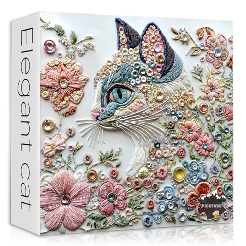 Omöjliga kattpussel för vuxna, 1 000 delar, PICKFORU kattunge blompussel, unik konst, skönhetsdjur, kattunge, katt, pussel, blommor, färgglada, hårda, utmanande pussel