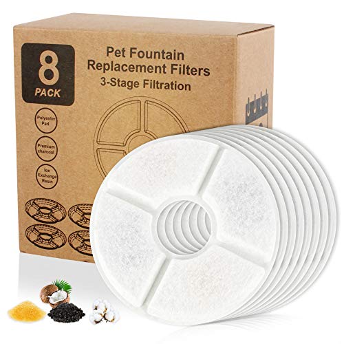 Wilktop Ersätter aktivt kolfilter för katt vatten dricka fontän ersättningsfilter blomma för husdjur hund rund fontän dispenser, för katter och hundar vattendispenser (8-pack