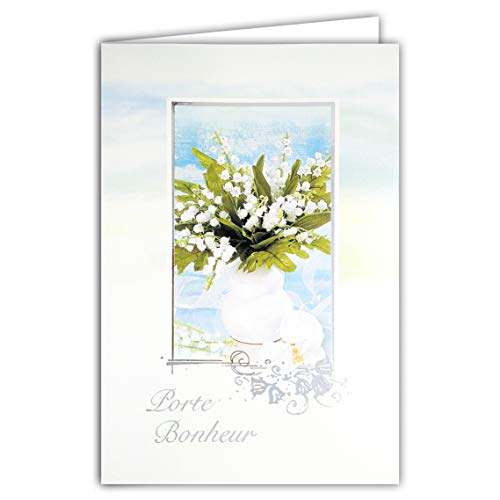 Afie 68-1046-A kort med gult kuvert MUGUET hållare med handmålade trä COCCINELL 1st maj i rosa Fuschia glänsande 13 vita klockor bukett blommor fest våren