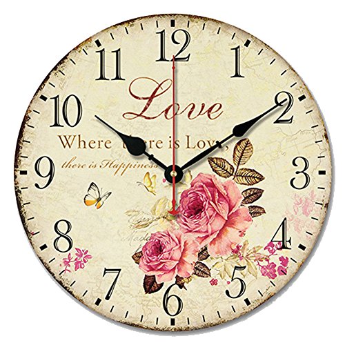 SWHONG Blomma väggklocka - tyst rustik vintage shabby chic klockor sovrum kök heminredning 25,4 cm