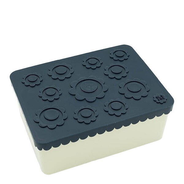 Blafre - Blomma matlåda plast tre fack 14x19 cm marinblå/ljusblå