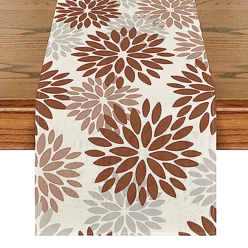 Artoid mode blommor brun dahlior blommor sommar bordslöpare, säsongsbetonad köksbord dekoration inomhus semester fest dekor 40 x 140 cm