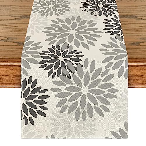 Artoid mode blommor grå dahlior blommor sommar bordslöpare, säsongsbetonad köksbord dekoration inomhus semester fest dekor 40 x 140 cm