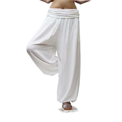 Gloop HS201701 Dam sommar haremsbyxor lediga blommor enfärgad vit 13090a1 M-L