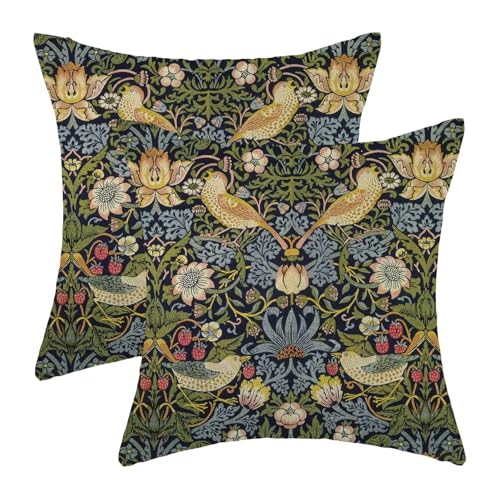 Jecuwo Blommiga kuddöverdrag 50 x 50 cm set med 2, salvia grön blomma fågel utomhus dekorativt kuddöverdrag William Morris vintage kuddöverdrag för soffa bondgård vardagsrum sängdekor