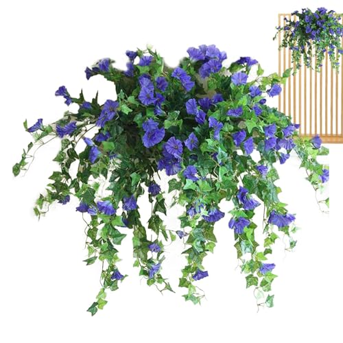 UXORSN 9 buntar konstgjorda blommor utomhus falska blommor siden morgon härlighet falska växter UV-beständiga konstgjorda växter för utomhus trädgård veranda uteplats fönsterlåda dekor (lila och