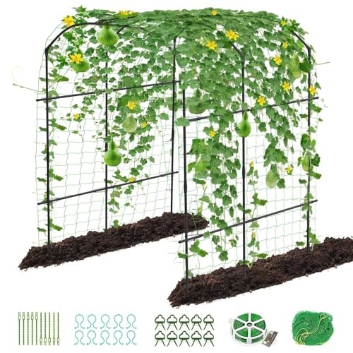 ZIKEBTUY växtstöd gurkor 220 cm högt växtstöd klättringbåge av metall, trädgårdsbåggaller med trädgårdsklämmor och vridna remmar för klätterväxter, vin, grönsaker, frukt, blommor, utomhus, gård,