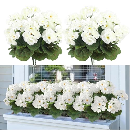 Laelfe Falska pelargoner för utomhusbruk, konstgjorda konstgjorda blommor pelargon utomhus balkong uteplats kyrkogård planteringsupphängning bordsdekoration (vit-2 st)