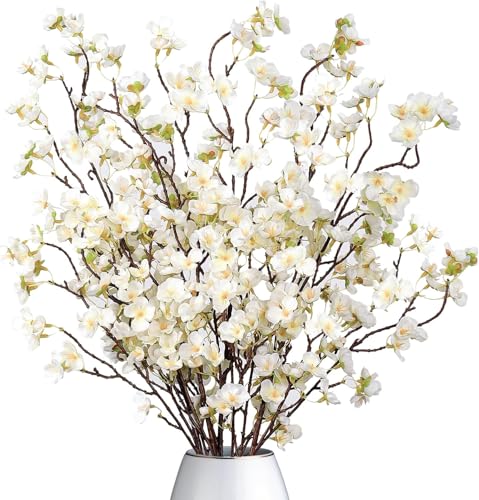 Dremisland 4 st konstgjorda körsbärsblomsgrenar vit plommonblomma 99,8 cm vinter falska blommor trädstjälkar silke blommor växter skrivbord juldekoration för bröllopsbuketter fest bord vas dekor