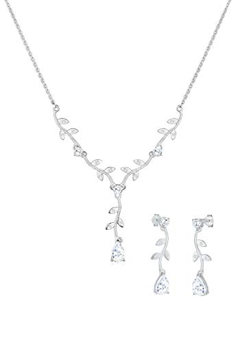 Elli smyckeset för kvinnor blomranka med zirkoniumkristaller i 925 sterlingsilver, 450, fasettad slipning, Kristall