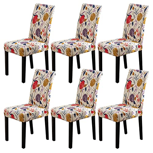 HZDHCLH Stolsöverdrag i set om 6 stretchiga, avtagbara och tvättbara skydd för matsalsstolar för hotell, restaurang, kök och bröllopsfest (blomranka/6 stycken)