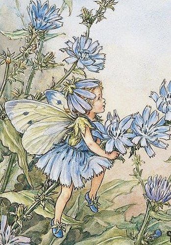 Litet kort med kuvert - Älva bland blå blomster (Fraktfritt)
