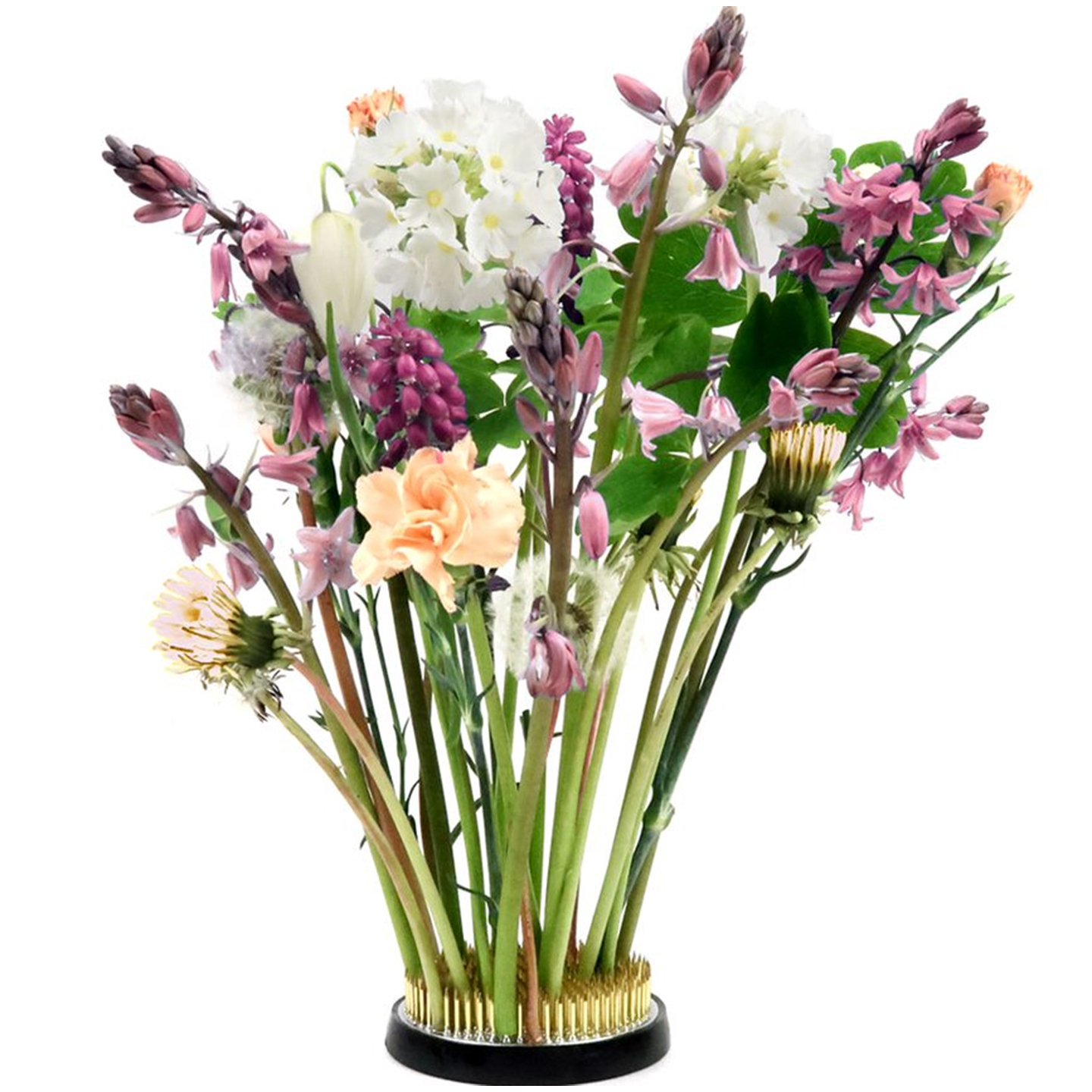 Rund Blomhållare / Blomsterfakir med Gummibas - Blomdekor - Svart