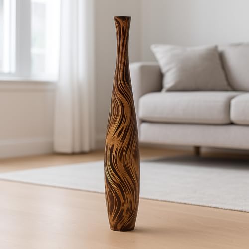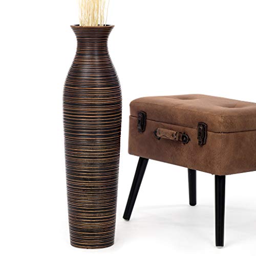 Leewadee Stor golvvas i trä för heminredning - hög blomsterhållare för lantbruksdekor för konstgjorda växter och pampasgräs, 65 cm, Brun