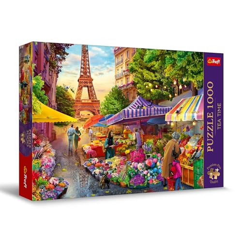 Trefl Premium Plus Quality - Puzzle Tea Time: Blomstermarknad, Paris - 1000 bitar, Serie med nostalgiska målade bilder, Perfekt passande bitar, för vuxna och barn från 12 år