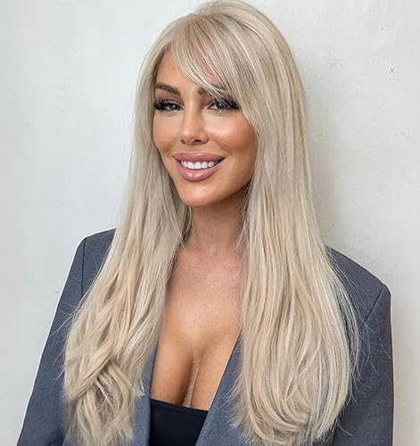 Esmee Lång Rakt Blond Peruk För Kvinnor Med Lugg Naturligt Syntetiskt Hår Peruk För Dagligt & Festbruk