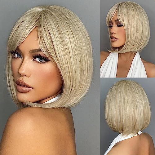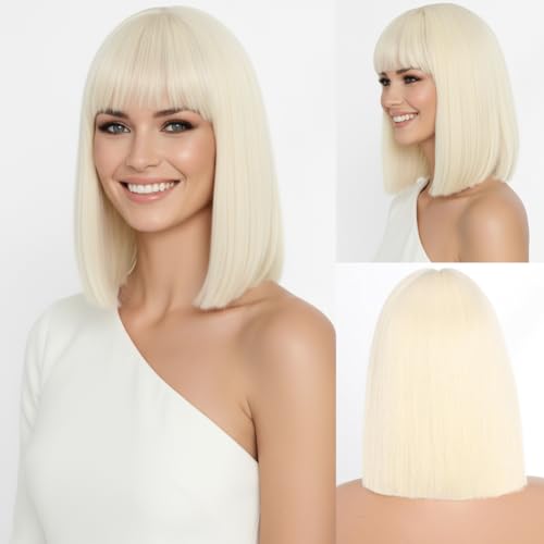 FENYW Bob peruk med lugg, kort rak peruk för kvinnor, syntetiskt hår, kort blond peruk, för kvinnor, fest, halloween, cosplay