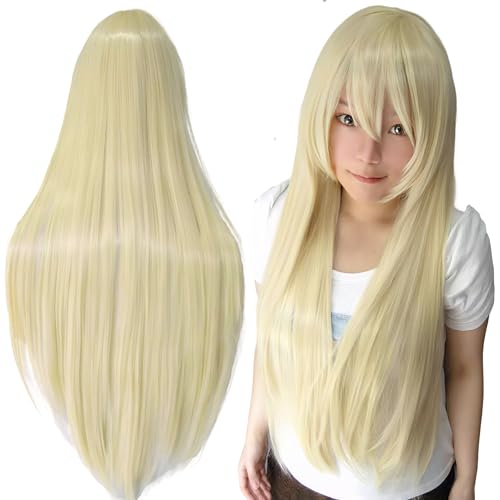 IMISSU 80cm lång rakt naturligt hår Cosplay peruker med lugg Huvudbonader Färgglad Halloween kostym Fest Peruk för flicka (Blond)