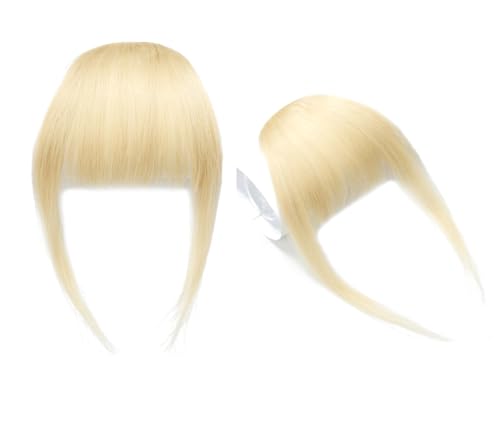Clip In Bangs Äkta Hår i Lugg Franshår Hårförlängningar Flat Bangs med Tempel, Blond Färg