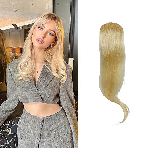Klämma i lugg 100 % äkta mänskligt hår lugg klämma i hårförlängningar lugg falska lugg med tempel Wispy lugg hårförlängningar för kvinnor (blond, klämma i snygga lugg)