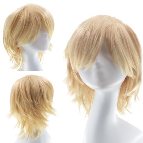 Dcbaboo peruk blond peruk halloween damer blond peruk 30 cm peruker blond kort peruk män cosplay anime peruk rak syntetiskt hår kostym party karneval peruk med lugg