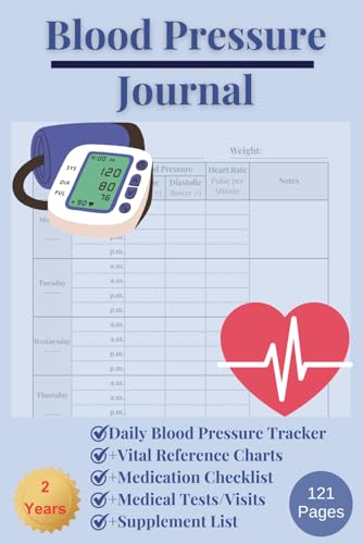 Blood Pressure Journal: 2 Year Simple Blood Pressure Log Book | Weekly & Undated | + Vital Reference Chart, Medical Tests & Supplement Checklist | 121 Pages, 6x9 inch