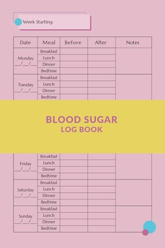 Weekly Blood Sugar Tracker: Simple and easy to read and fill out- Great gift idea for nurses, grandparents, parents, etc- For personal use on the go ... Tracker- Weekly tracker with Snack section