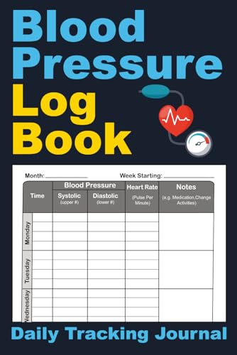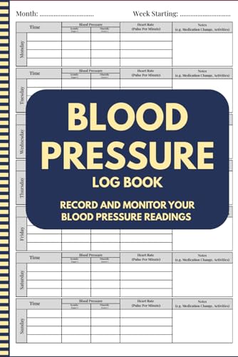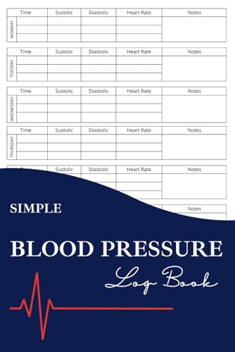 Blood Pressure Log Book, Easily Record & Monitor Daily Blood Pressure at Home or Anywhere, Simple Blood Pressure Record, Weekly Sheets for Two Years