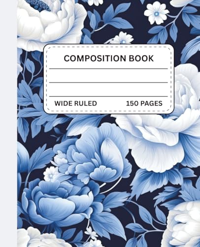 Blue Blossom Floral Composition Notebook: for Students, Teachers, or Professionals | 150 Wide Ruled Pages | Elegant Blue Floral Pattern with Vintage Peonies (TRST Composition Books)