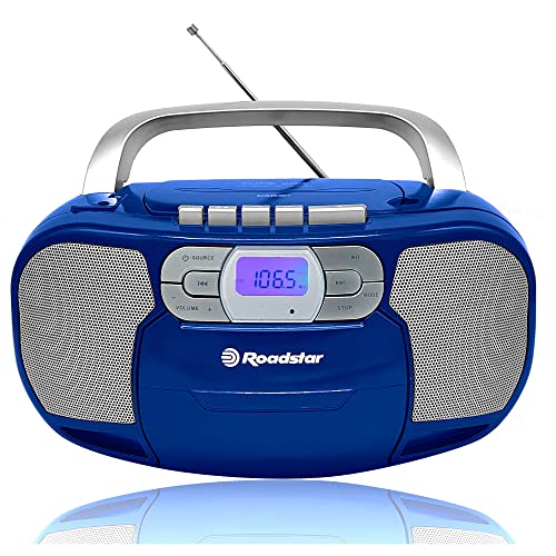 Roadstar RCR-4635UMP/BL Radio CD Bärbar Kassett, Digital Radio PLL FM, Boombox CD-MP3-spelare, USB, AUX-IN, Hörlursutgång, Blå