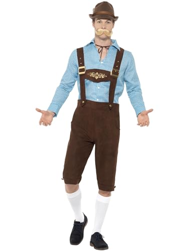 Beer Fest Costume, Blue & Brown, with Shirt & Mock Suede Lederhosen, (XL)