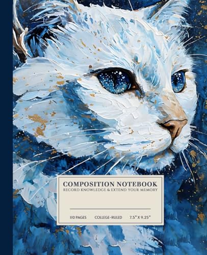 Captivating White Cat Composition Notebook | Mysterious College-Ruled Notebook: Realistic Painting of White Cat with Piercing Blue Eyes on Dark Blue ... | Perfect for School, Work, or Personal Use
