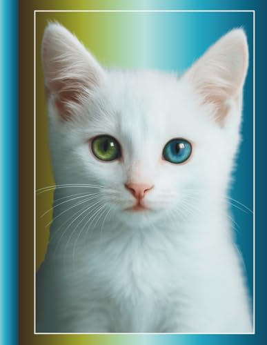 Adorable White Kitten With Odd Eyes Blue & Green: Lined Journal 8.5” x 11” with Blue Margin – Perfect for Cat Lovers and Animal Enthusiasts