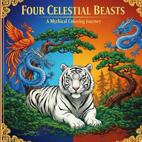 Four Celestial Beasts Colouring Book: Intricate Adult Designs Inspired by the White Tiger, Blue Dragon, Red Phoenix, and Black Tortoise