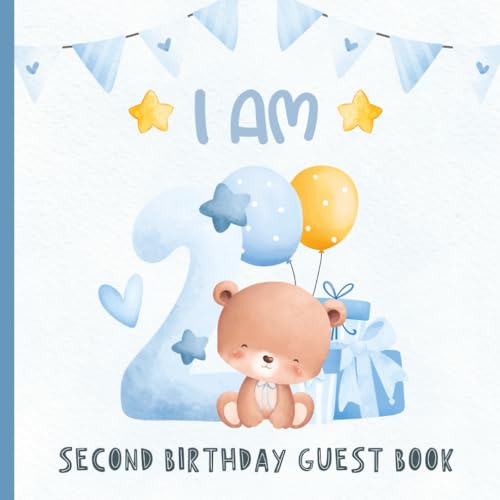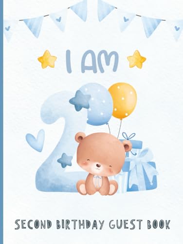 I Am Two - Second Birthday Guest Book: 2nd Party Messages for Boys with Gift Tracker | Memory Keepsake for Sons & Parents | Blue Design with Bear