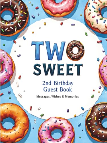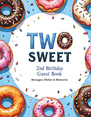 Two Sweet Donut 2nd Birthday Guest Book: Blue Donut Shop Party Sign-In Keepsake: Messages, Wishes & Photo Pages | Guest Signatures for 200 | Gift Log + Party Memories for Toddler Boy
