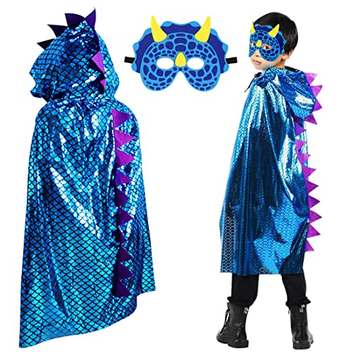 SKHAOVS Kappa Dinosauriedräkt Mask, Halloween, barn, dinosaurie, drake, halloween, karneval, julkostymer, födelsedagsfest, 3–9 år, utklädningspresenter (blå)