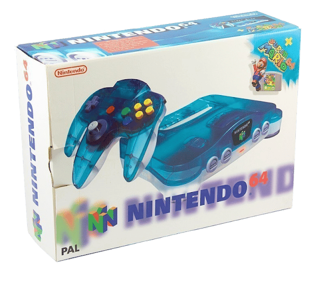 Nintendo 64 Basenhet Clear Blue / White Mario Pak (incl. Mario 64)