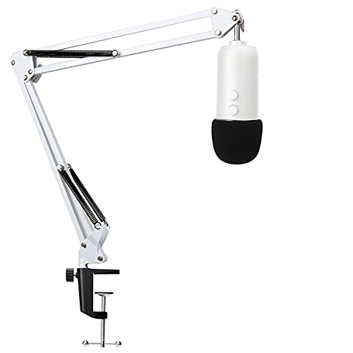 YOUSHARES White Mic Stand with Pop Filter - Mic Suspension Boom Arm Stand with Foam Cover Vindruta för White Blue Yeti och Yeti Pro Microphone