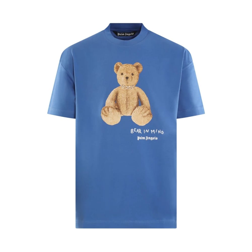 Palm Angels, Toppar , Herr, XL, Bear In Mind Blå T-shirt