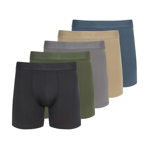 PUMA Men's 5 Pack Performance Boxer Briefs, Olive/Blue/Black