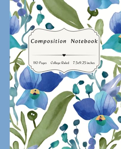 Composition Notebook College Ruled: Elegant Blue and Olive Green Floral Cover Journal for Students, School, College, Office, and Everyday Writing