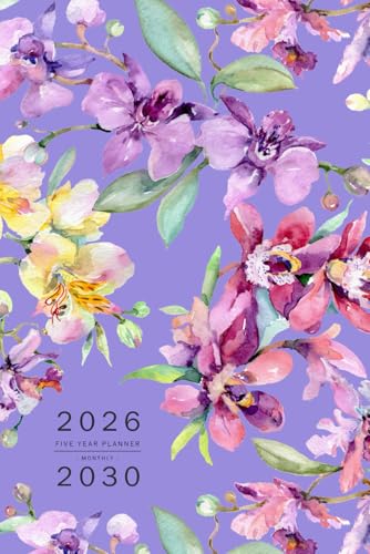 Five Year Planner 2026-2030: 6x9 Monthly Journal Organizer Medium | Watercolor Wild Orchid Bouquet Design Blue-Violet